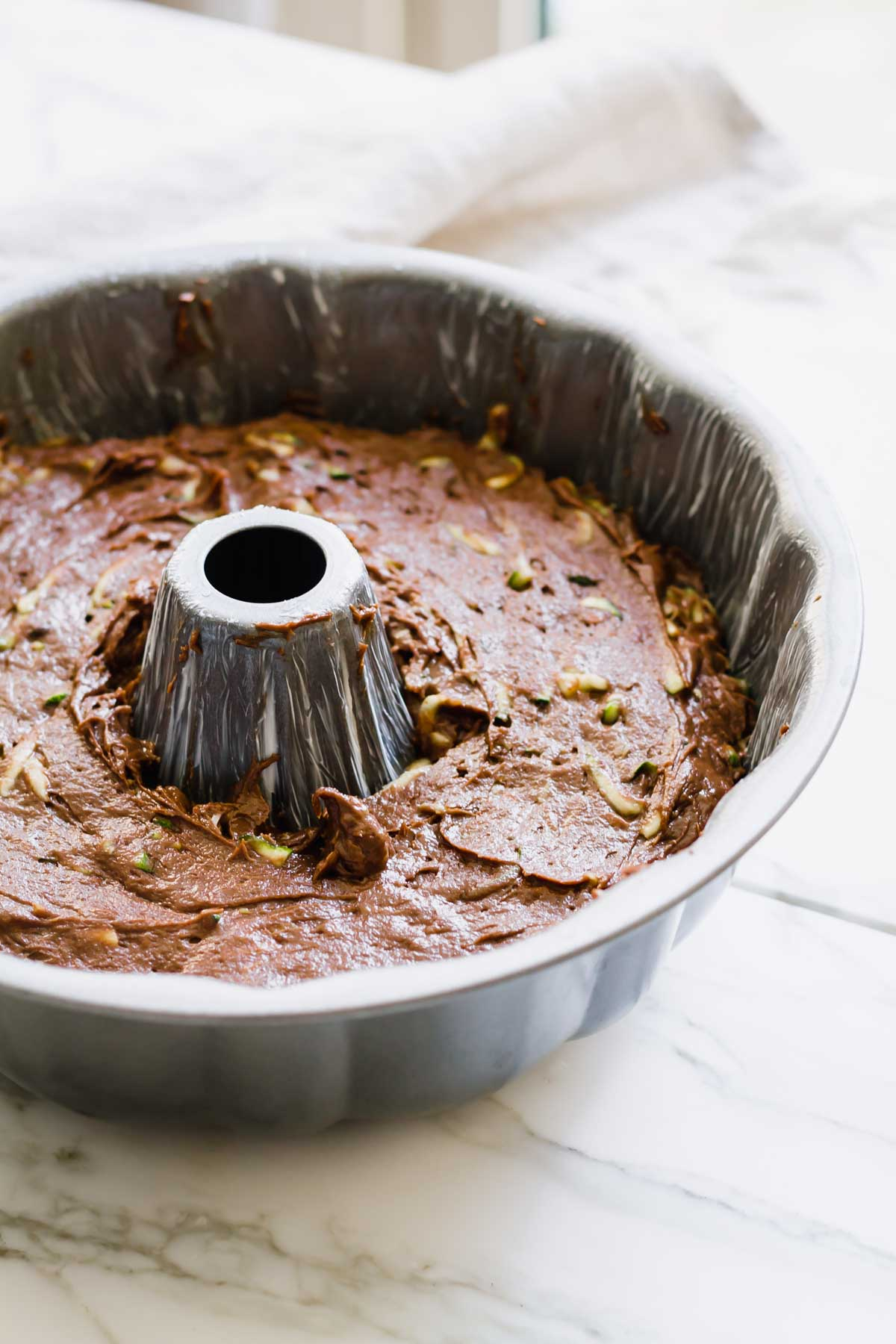 The first is the importance of cooking time. There is a little butter and four eggs in this cake, but no other fat. So, most of the moisture comes from the grated zucchini and the applesauce in the recipe.