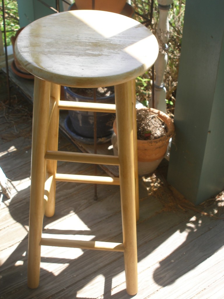 I have a wooden stool in my kitchen that I painted years ago. I also did one with an Argyle design for The Kid’s kitchen for Christmas one year. They come in handy all the time. During a visit to the thrift store, I’d scored another for $8 ($40 at Target). I put it away until I figured out what to do with it.