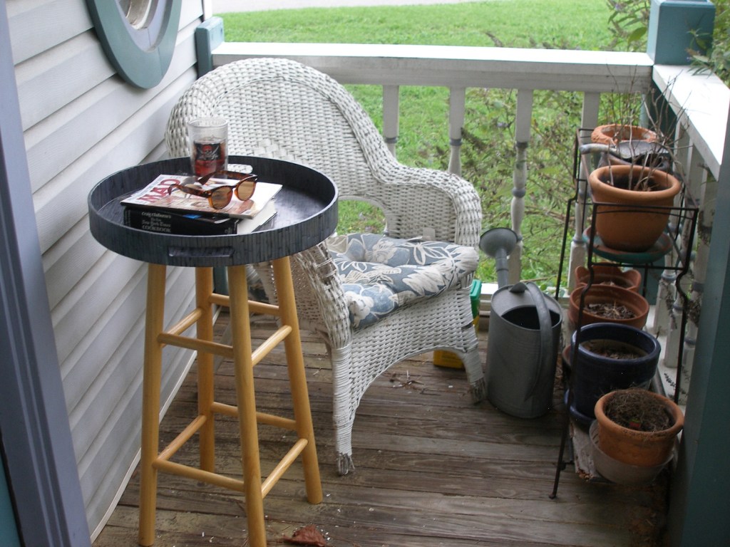 The Kid has an apartment with a small patio containing a hammock chair. I offered to get a table for the space.