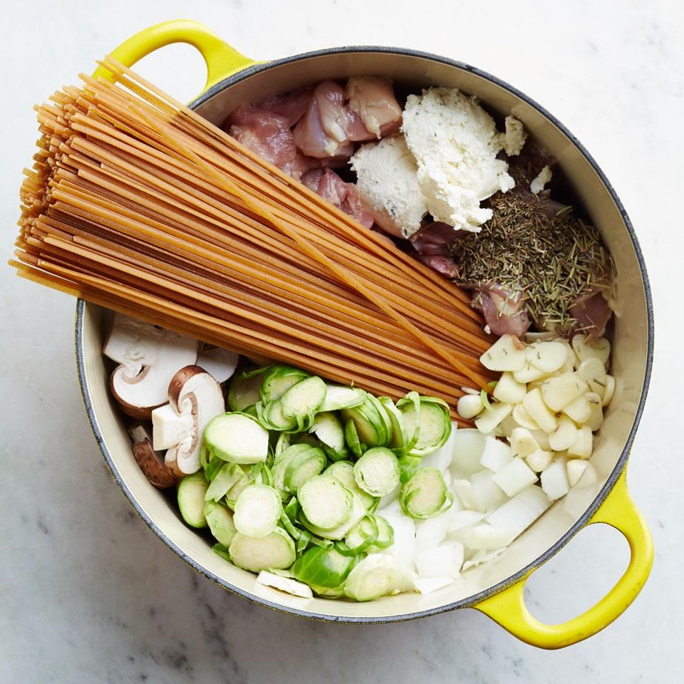 It’s a take on those one-pot pastas which instead of cooking in a large pot of water are cooked in a smaller amount of stock that cooks entirely into the noodles along with sauce ingredients. I made the sauce separately so I could brown the veg and get a creamy mouth-feel. I then married the two together right before service.
