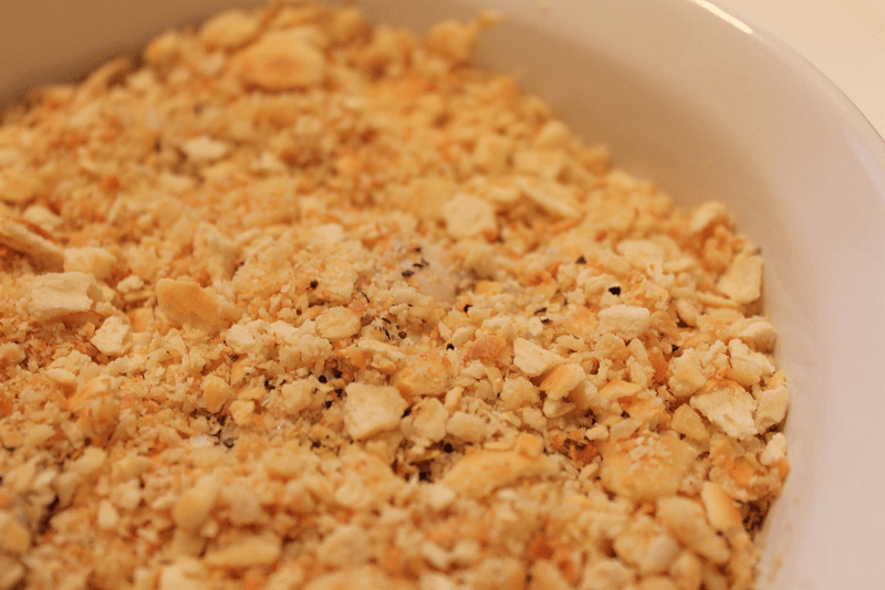 Every time we’re down to crumbs in a bag of chips, or crackers, or anything crunchy, I dump the remains into a zip-top bag that lives in the freezer. Then when it’s pork chop day, I throw everything into the bowl of a food processor along with herbs, Worcestershire, parmesan, olive oil, salt, and pepper. If the crumbs are dark, I use them as is. If they’re pale I also toast them for color. Then I use it just like the store-bought stuff.