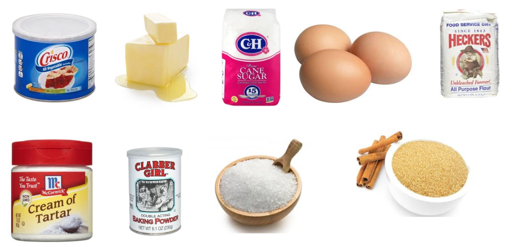 Mix shortening, butter, and eggs, thoroughly.  Blend flour, cream of tartar, baking soda, salt.  Mix with shortening/butter/sugar/eggs mixture.