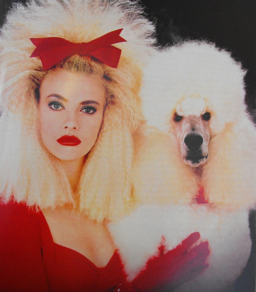 There also was a polished new aesthetic for dressier or professional situations.  The colors were still luridly bright and the hair was still colossal.