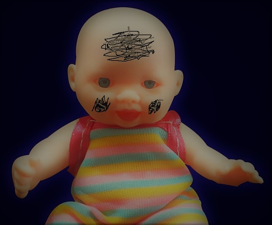 He named her Susan, shaved her head, and gave her a face tattoo with a magic marker.  She was his constant companion for years.