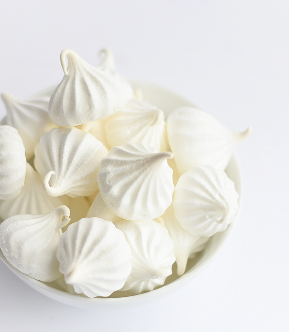 *The most important thing about meringues is to get them and keep them crispy. When you take them out of the oven, they won’t be totally set. Once they’re cooled completely, they should be totally crispy throughout.