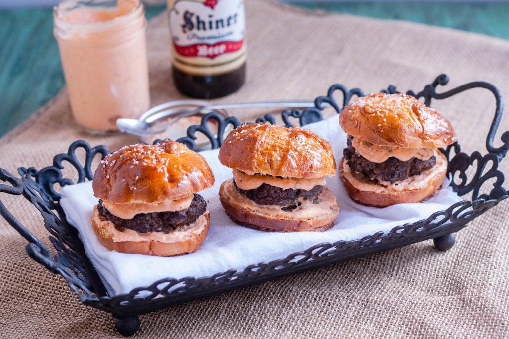 They had these adorable little sweet Italian sausage patties. I bought six of them, and decided we’d have sliders. Over in the bakery department, I found six slider-sized pretzel buns.